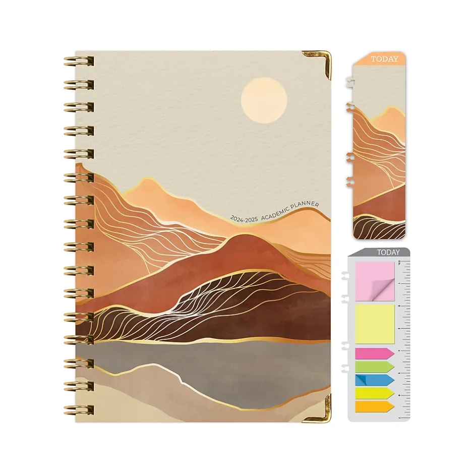 This Global Printed Products 2024-2025 academic weekly and monthly planner makes it easy to stay on task and stay organized. The planner covers a 14-month academic date range from June 2024 to July 2025 and comes with a stylish Golden Desert design with gold-tone foil accents.