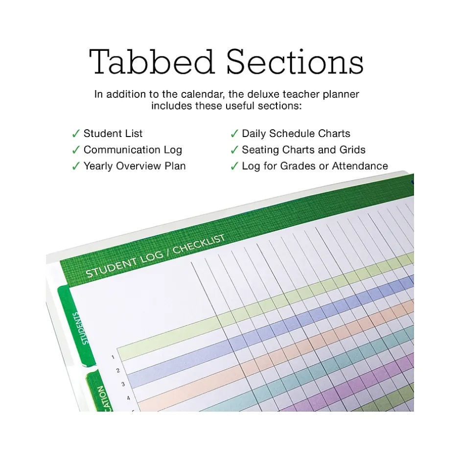 The Global Printed Products Spring Floral 2024-2025 teacher planner makes it easy to stay on task and stay organized. Weekly and monthly pages cover a 13-month academic date range from August 2024 to August 2025. This deluxe teacher planner packs a ton of features, including student lists, communications log, yearly overview plan, daily schedule charts, seating charts/grids, logs for grades and/or attendance, and pages for notes.