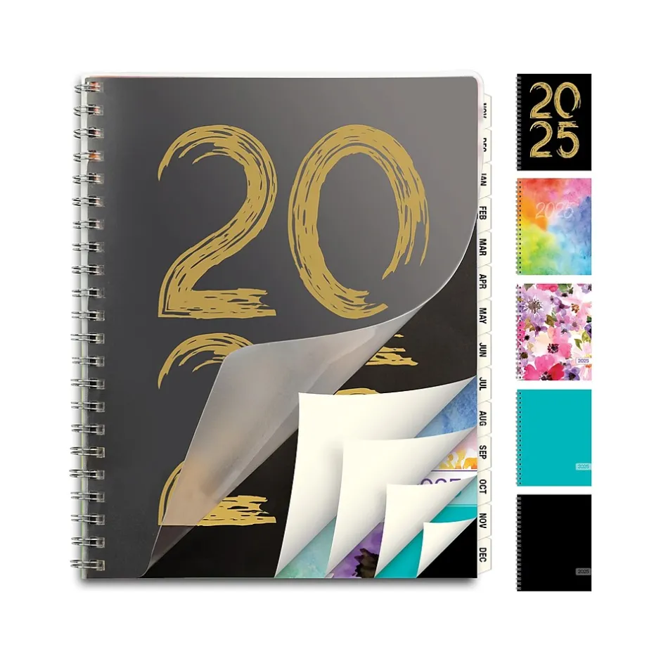 This Global Printed Products monthly planner is an essential companion for professionals who want to streamline their self-organization and keep every crucial detail at their fingertips. Meticulously designed, the planner is wrapped in a beautiful cover, exuding elegance and durability. Comes with five cover designs bound into the book. Use your favorite design by simply tearing out the other covers, or remove the covers one by one throughout the year to change up the look.