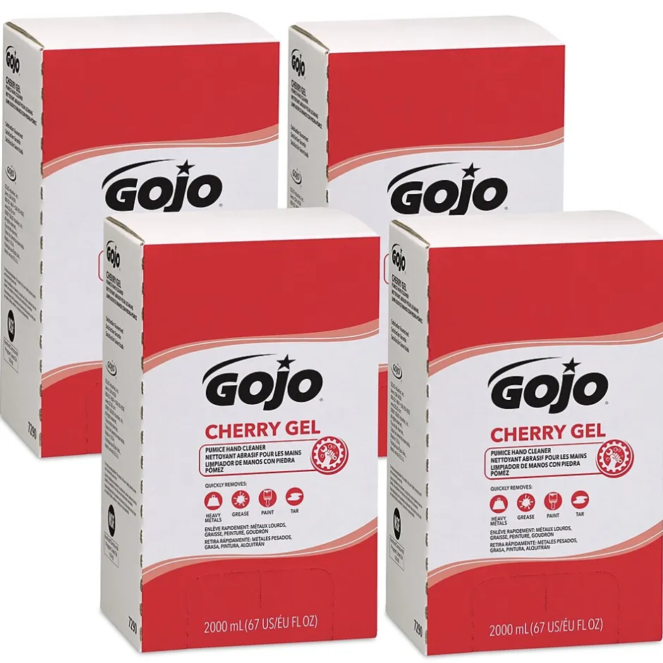 - Case Includes: 4 – 2000 mLGOJO® Cherry Gel Pumice Hand Cleaner refills for GOJO® PRO™ TDX™ Push-Style Dispenser (7200-01), dispenser sold separately