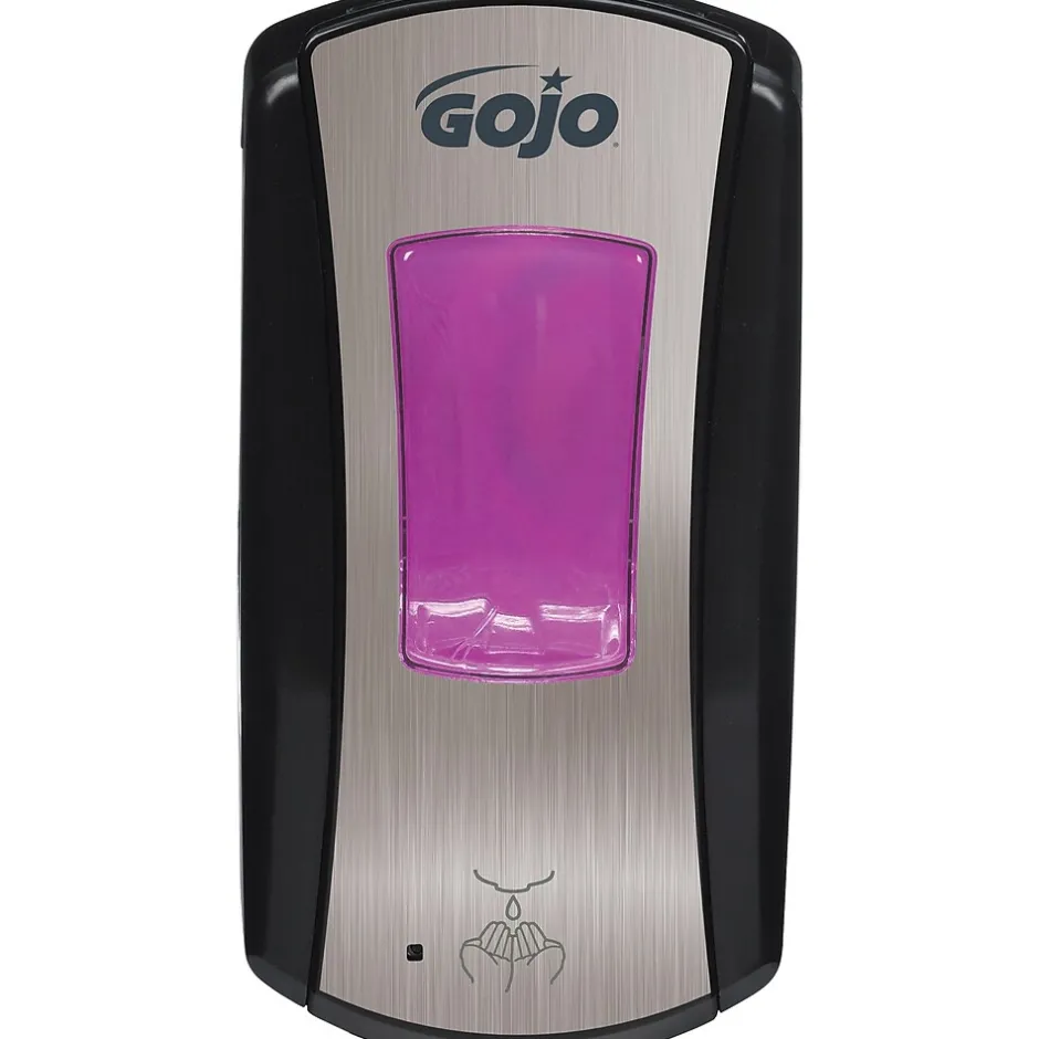 GOJO® LTX-12™ Chrome/black brushed dispenser controls portions of dispensed which reduces waste and locks for security and is ideal for high traffic areas. Put these easy-to-install soap dispenser in high traffic handwashing stations for a hands-free way to get soap.Compatible with GOJO 1200 mL hand wash refills.