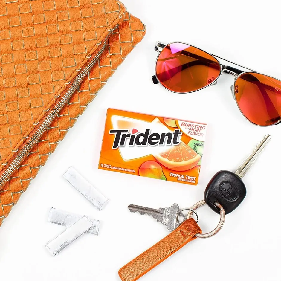 Keep your mouth feeling fresh, after meals or on the go, with the help of Trident Tropical Twist sugar-free gum. Designed to provide a refreshing oral health experience, Trident Tropical Twist sugar-free gum is bursting with flavorful fruity flavors.