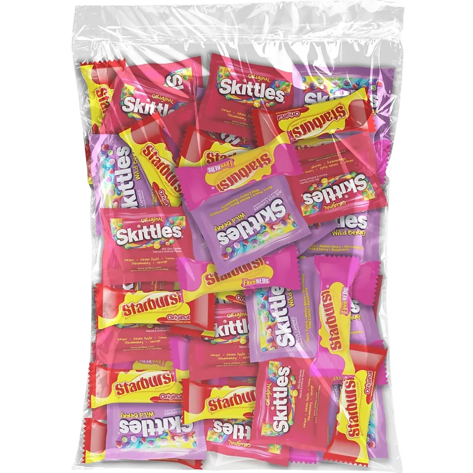 Bring fruity fun to the workday with a bulk bag of SKITTLES and STARBURST Chewy Candy. With over 6 pounds of individually wrapped treats, the office pantry will be stocked with sweets for all four quarters. First things first, fill candy dishes at the front desk and break room with SKITTLES Original, SKITTLES Wild Berry, STARBURST Original, and STARBURST FaveReds. This nut-free candy assortment is the perfect choice to rescue your coworkers from midday slumps. Celebrating a promotion? Preparing for the office picnic? From birthdays to holidays and everything in between, fill party favors and gift bags with fun-size, individually wrapped SKITTLES and STARBURST chewy candy. There’s always room in the budget to make the office sweet! Order your SKITTLES & STARBURST Chewy Candy Variety Bulk Bag today.
