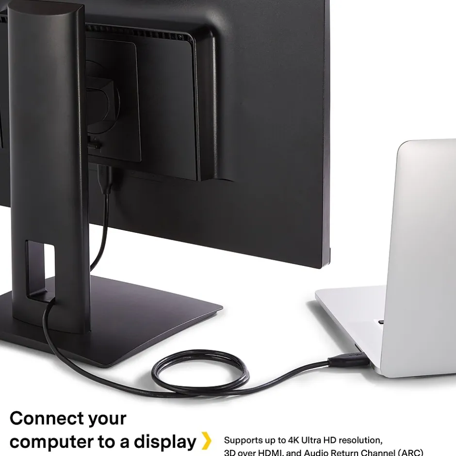 Display media on projectors, TVs and monitors with this HDMI cable. The 12-foot cord supports easy connections to various devices. This NXT Technologies 12-foot black HDMI cable supports 4K resolutions for immersive presentations during office meetings and workshops.