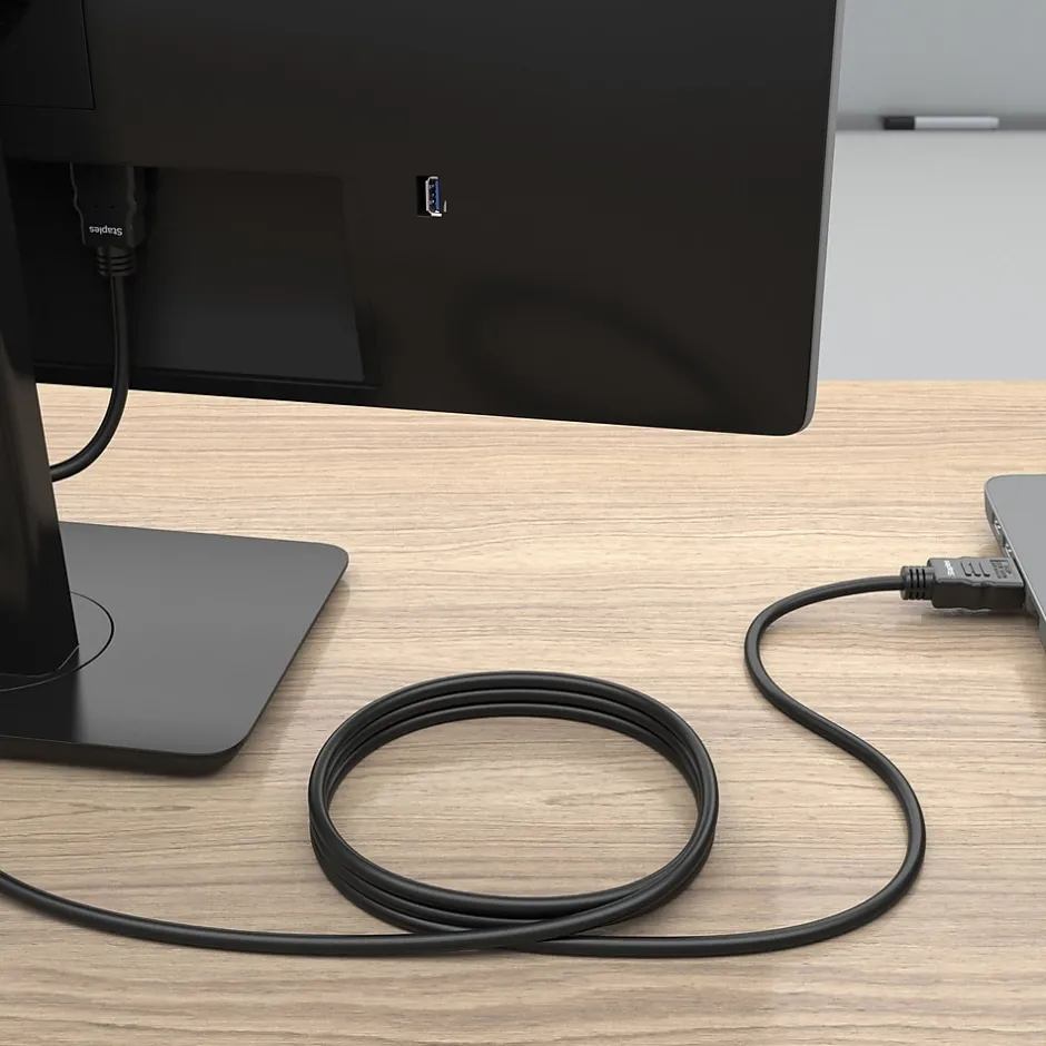 Delivering crisp 4K Ultra HD resolution this HDMI cable promises clear audio and video for an exceptional experience. Featuring a 12-foot cord, this cable provides you ample length to connect devices across your work or entertainment station. This cord is the perfect choice for outfitting your work, gaming or media space. Enjoy high resolution audio and video between devices so you can upgrade your home or office workspace and do your best work. Backed by Staples Brands 100% satisfaction guarantee, or your money back.