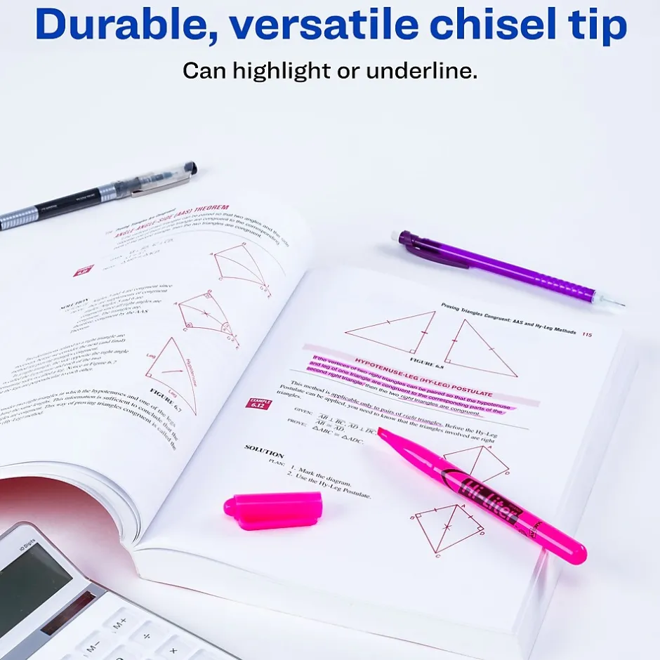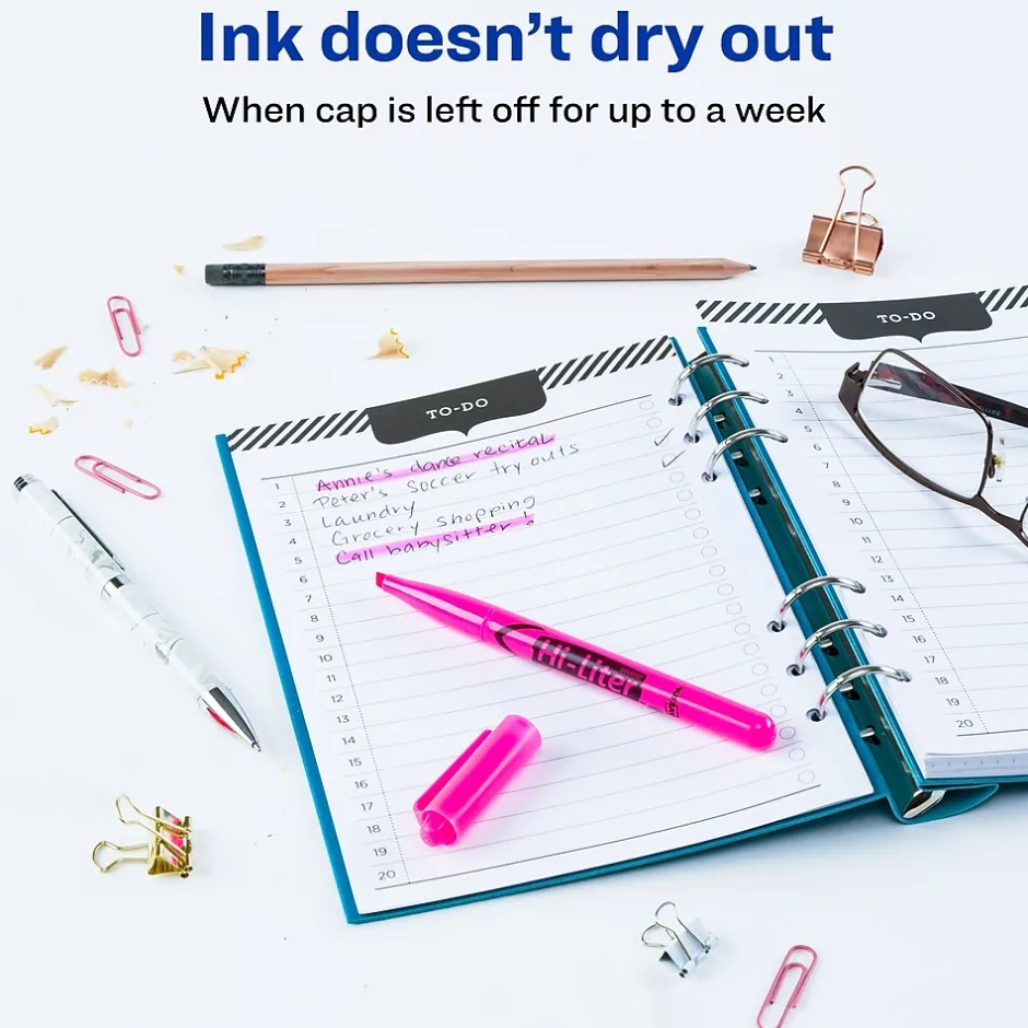 Help important information stand out on the page with these pen-style highlighters. The chisel tips let you underline text or mark entire passages, and the bright pink color captures your attention as you review notes and reading materials. With rounded barrels, these Avery Hi-Liter highlighters offer a comfortable grip.