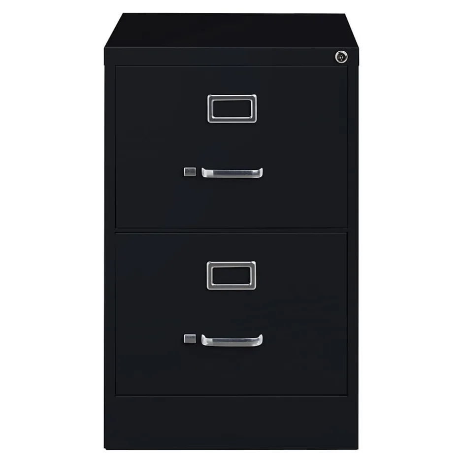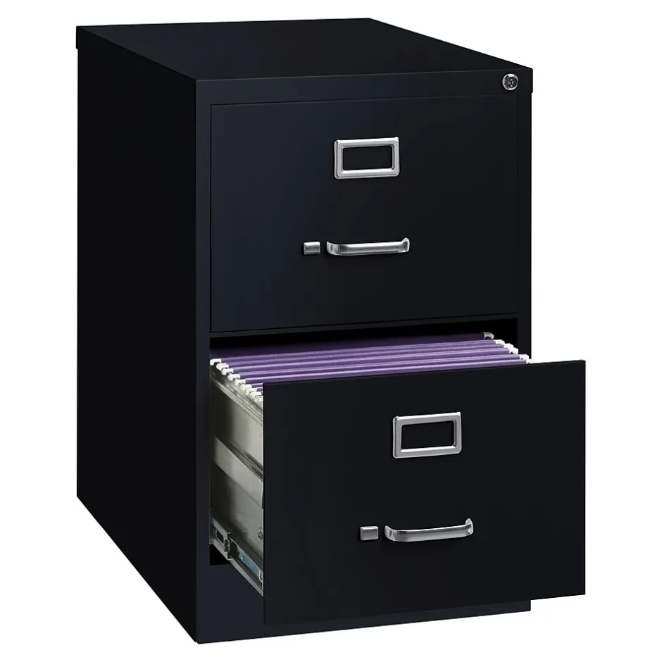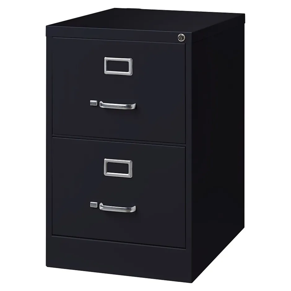 25″ deep metal, 2 drawer, legal width, commercial grade vertical file cabinets are perfect for business, educational, or personal offices. These cabinets feature a classic design and are constructed with high quality durable materials that are suitable for heavy-duty use. Ships fully assembled and is ready to accept legal width hanging file folders. Smooth surface is easy to clean. Each drawer includes full extension ball-bearing slides for smooth drawer action. Even fully loaded, these drawers open with ease. Adjustable follower wires keep files upright. The included core-removable lock allows cabinets to be keyed alike. Designed to meet or exceed ANSI-BIFMA industry standards for performance and workmanship. Made with 28% total recycled content. Backed by a Limited Lifetime Warranty.
