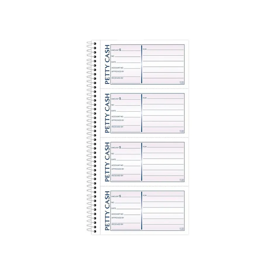 Track spending and incidentals with these petty cash books. The two-part carbonless forms let you retain a master copy of all transactions, and the preprinted pages provide dedicated space for the names of recipients and authorizing managers for convenient record-keeping. With spiral bindings, these Adams petty cash books let you flip through pages to find previous expenses and approved cash distributions.