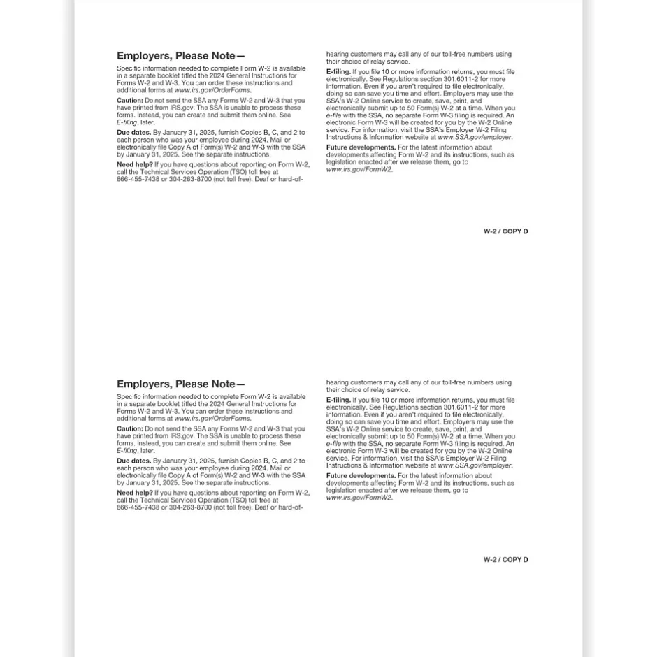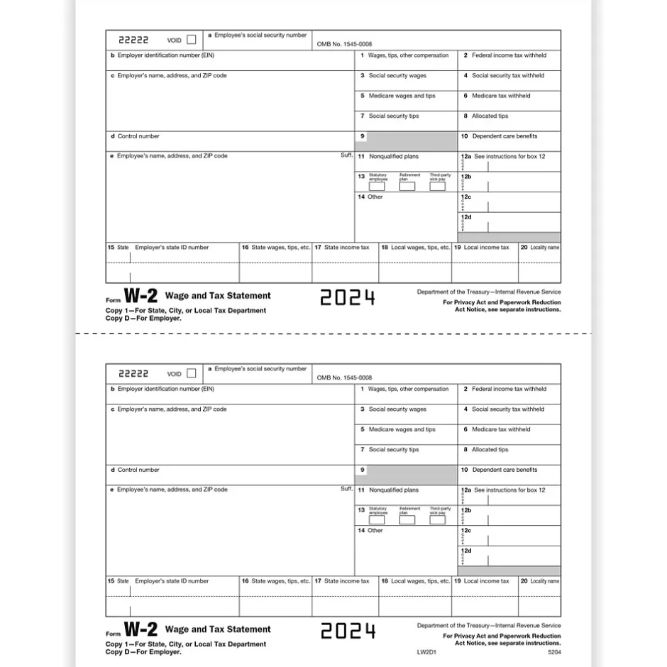 - Single-part, 2-up: Employer Copy D and/or State, City, or Local Copy 2