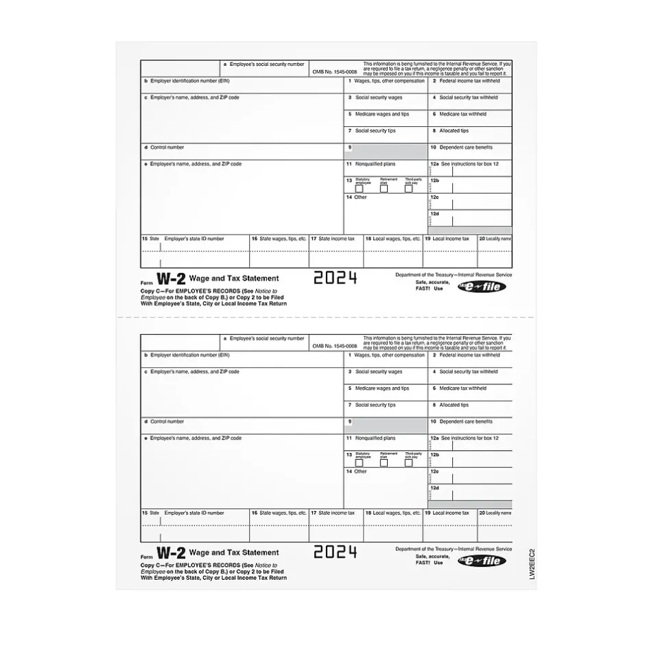 - 2024 1-Part W-2 Copy C or 2 Forms for up to 100 employees