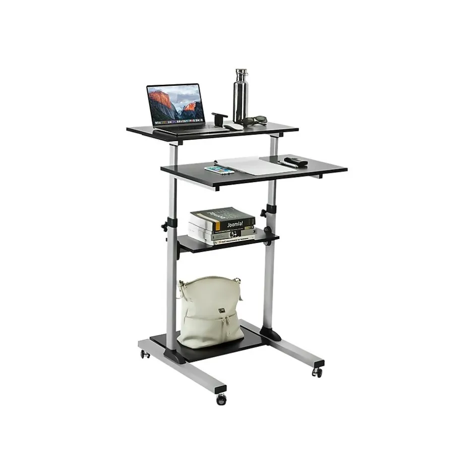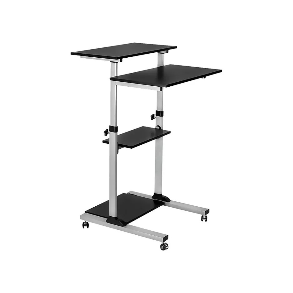 Create an ergonomic work area with this rolling stand-up desk. Tighten the two adjustment knobs by hand to move it from 37 to 54 inches when you’re ready to change position. The four platforms provide ample space for the basics and accommodate projectors for presentations, and each one holds 33 pounds for easy use with heavier equipment. Four caster wheels make this Mount it rolling desk simple to move.