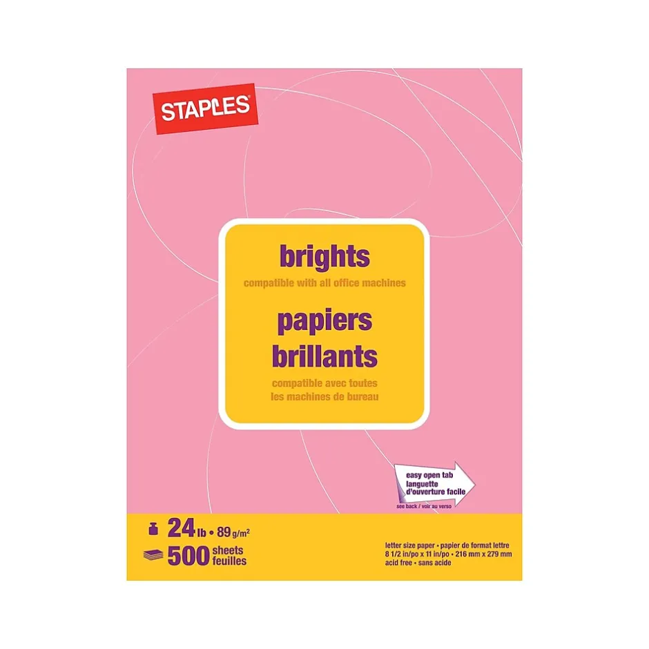 Staples Colored Paper, in Pink, is the perfect choice for your flyers, brochures, presentations, and important documents! With a 24 lb. basis weight, this paper has a professional feel and provides easy double-sided documents. Staples paper is acid-free and comes with 500 sheets of paper per pack so you always have enough on hand. Plus, it is compatible with copiers, inkjet and laser printers!