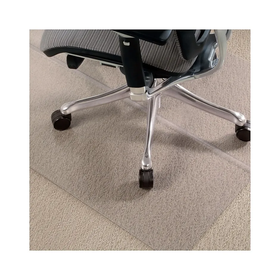 Extend the life of your flat to low-pile carpet (up to 1/4″ thick including padding depth) by protecting against chair caster wear and tear. A perfect addition to your workspace, this Staples chair mat provides a smooth surface that enhances ergonomic comfort by allowing your rolling office chair to move freely. The foldable design makes this chair mat easy to move or store. Made with durable vinyl that is GREENGUARD Gold certified for low chemical emissions to promote a healthier workspace. Designed for use on carpeted surfaces only, do not use on hard floors.