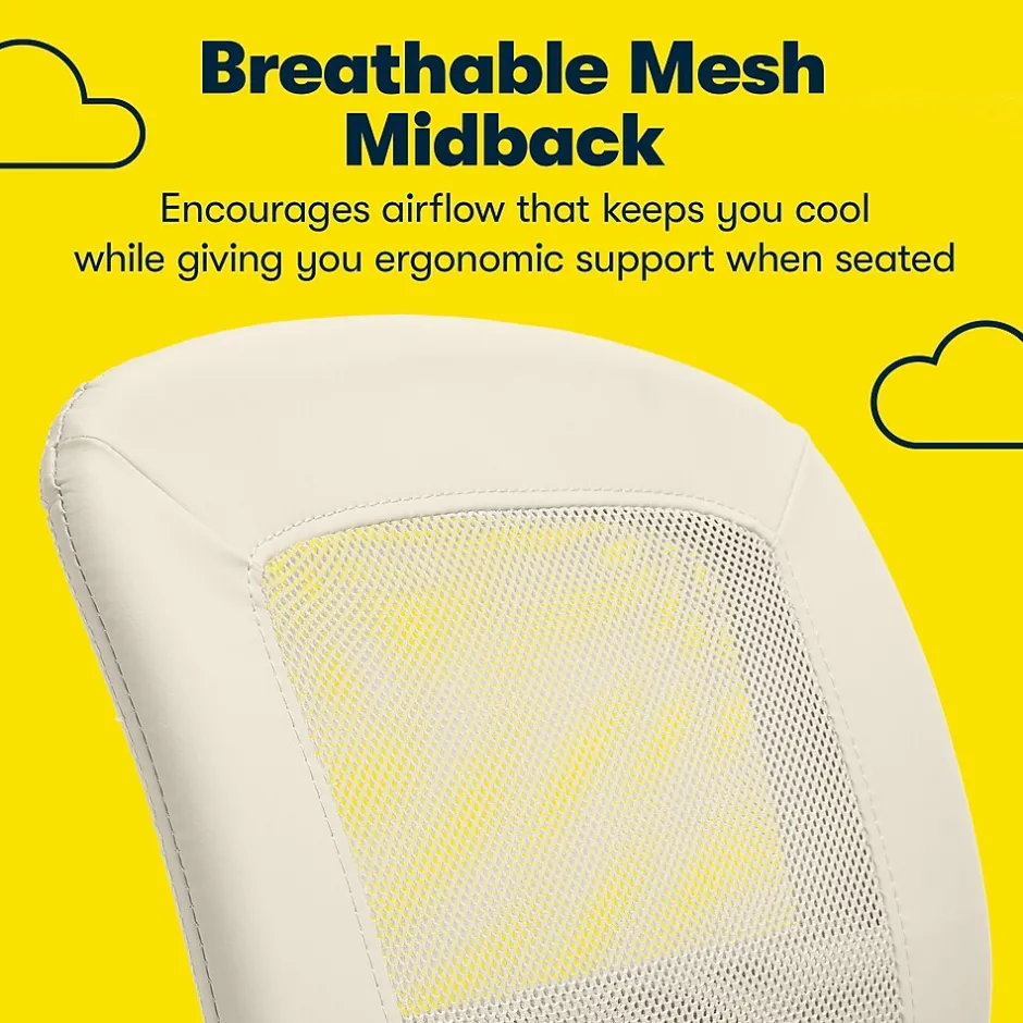 - Cream color bonded leather seat with breathable mesh back for comfort