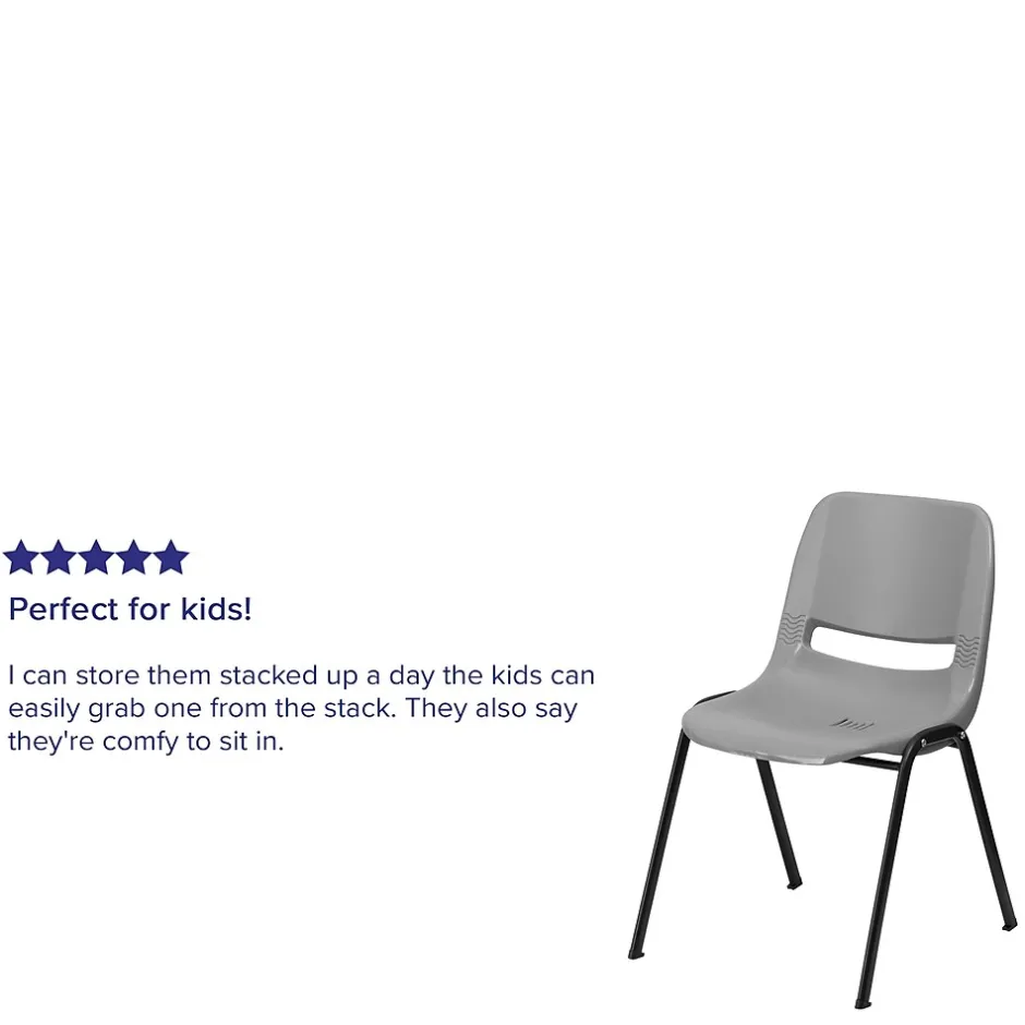 Students sit most of the day, provide comfortable seating in your classroom or training room with these popular ergonomic plastic stack chairs. These student stack chairs are favorable in classrooms due to their ergonomic seat shell and lightweight design to move easily around the classroom. The ergonomic comfort-formed shell has a waterfall edge to reduce leg pressure and an air-vented lower back. Plastic chairs are easy to clean for high traffic environments. Spills in the seat drain through the drain holes to prevent water pooling. These stackable school chairs may be used outdoors for school events, protect the chairs from wet weather. We consider this student stack chair to be the premier stack chair – essential for every school and classroom setting. After parent-teacher conferences or school events these chairs stack neatly up to 20 high and can be transported on our steel stack chair dolly.