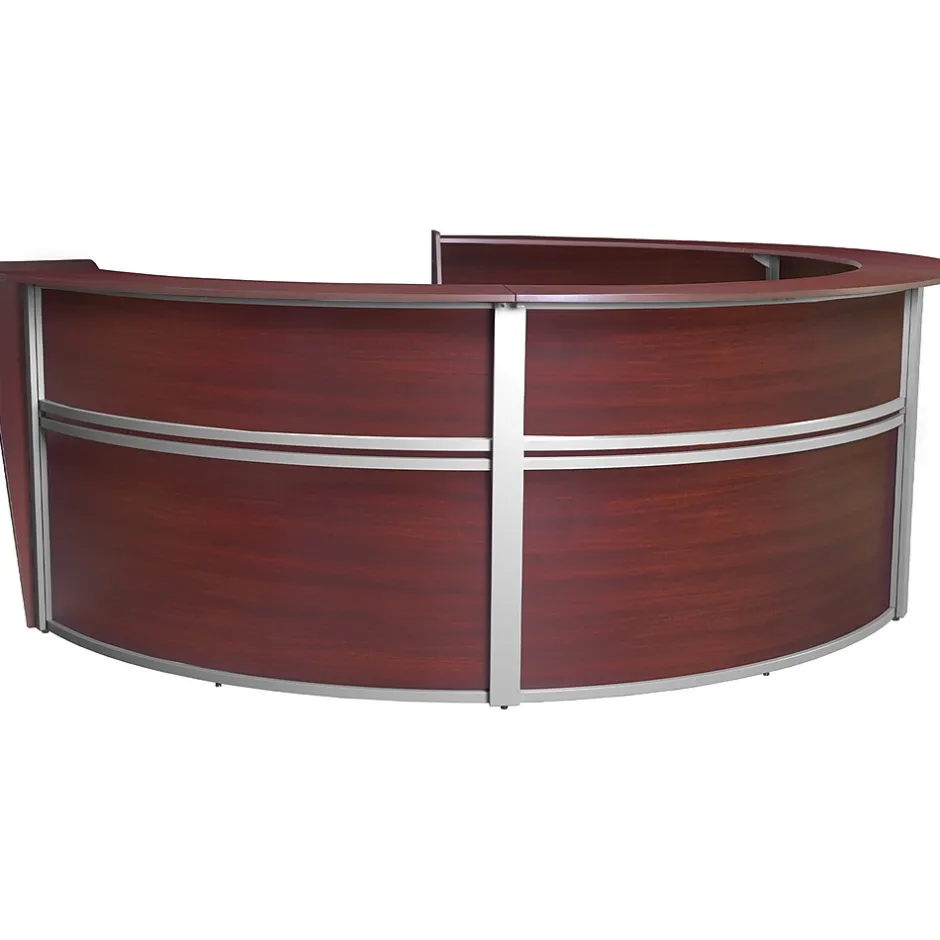 - Greet visitors properly with this curved four-unit reception desk workstation
