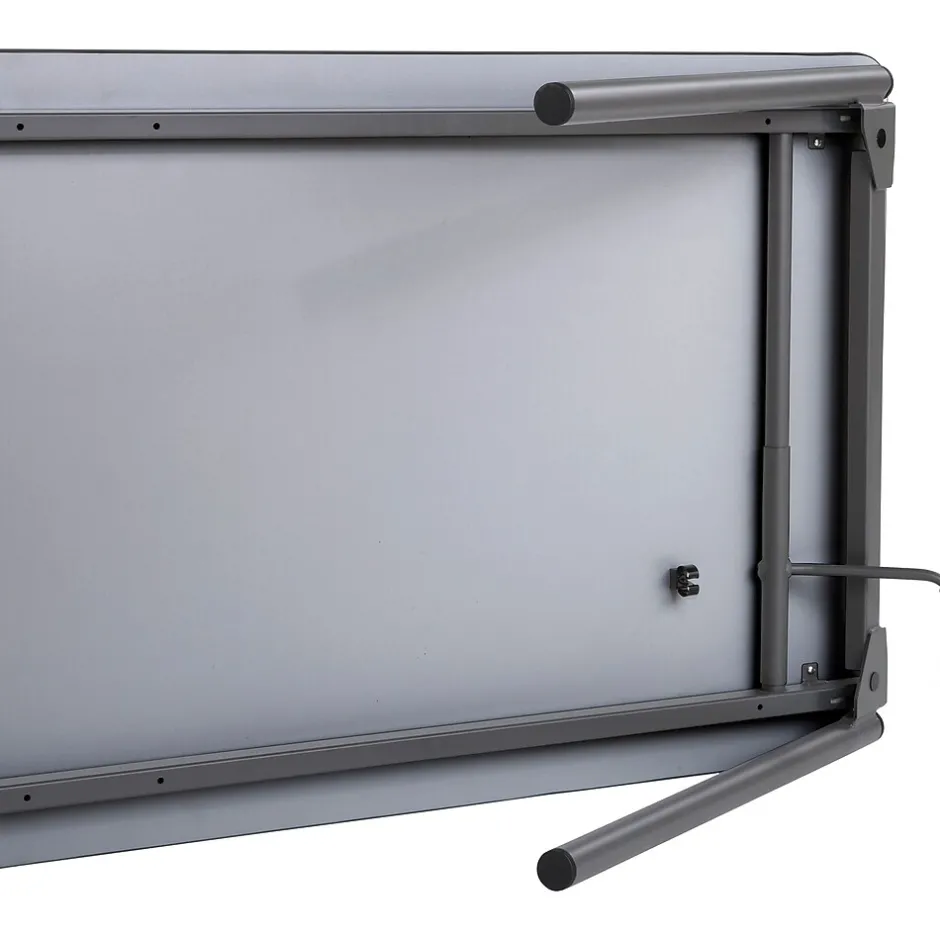 This simple folding table from Maxx Legroom features an open corner leg design that offers generous leg room. The single-cam handle and quick release leg lever make setup quick and easy, while the sturdy construction ensures durability. The table folds flat to a compact size, making it easy to store. The metal legs enhance stability and ensure years of use. This table is ideal for displaying trade brochures or products at conventions, or keep it on hand for extra seating whenever you need it. This pro duct comes with a manufacturer’s limited 5-year warranty for peace of mind.