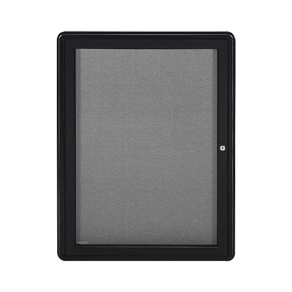 Draw attention to important documents and other materials while keeping them secure thanks to this Ghent 2′ x 3′ enclosed bulletin board. Pinned items stay firmly in place in the high-density fiberboard covered with durable, gray, fade-resistant fabric and are enclosed in a black powder-coated aluminum frame with soft edges and rounded corners. The doors are constructed with shatter-resistant acrylic and feature a lock with two keys, perfect for areas with a lot of traffic.