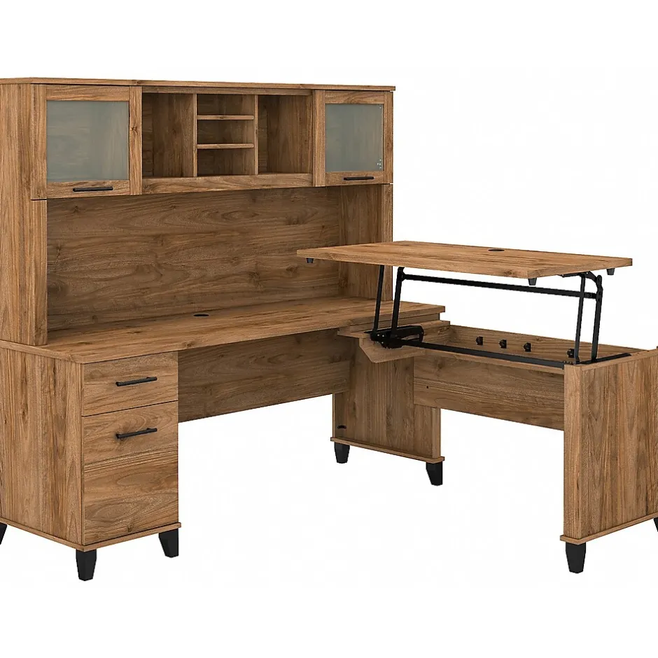 Hot Somerset 72″W 3 Position Sit to Stand L Shaped Desk with Hutch, (SET015FW) L-Desks
