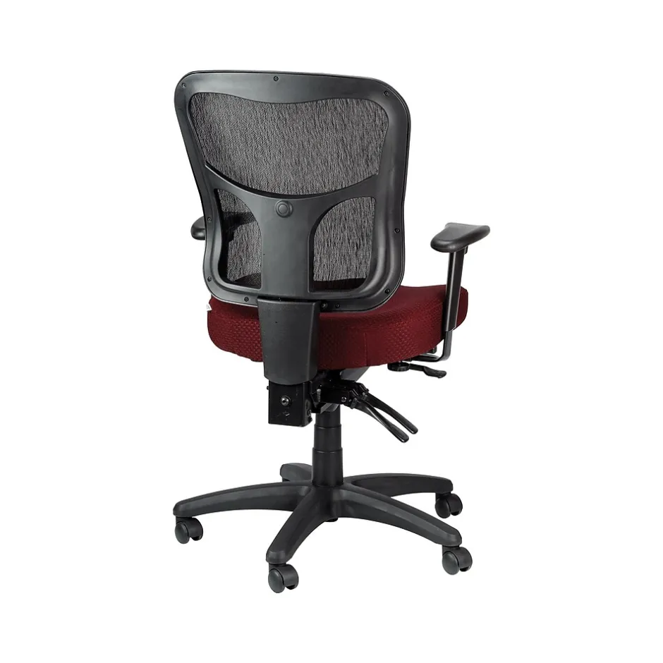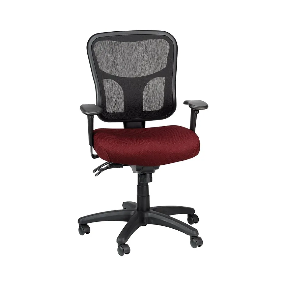 - Burgundy mesh upholstery allows air to circulate