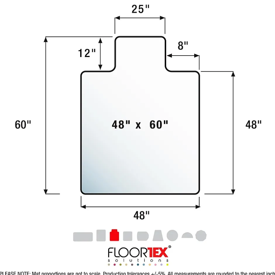 - Lipped chair mat 60″ x 48″ with 25″ x 12″ lip
