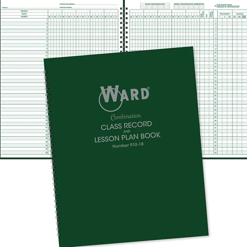 Ward Class Combination Plan and Class Record books are printed on high-quality white paper, with Ward’s signature Green Ink. All of Ward’s combination books contain seating charts, notes pages, and 32 spreads for record keeping (9-10 week periods), 44 weeks of lesson plan pages, and a school events calendar.