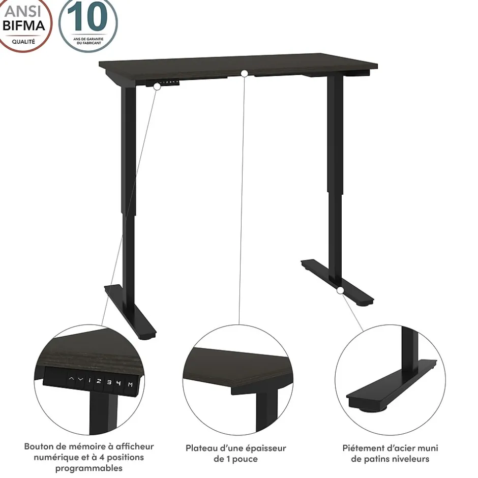 - MADE IN CANADA: Excellent customer support. Assembly required (2 people). The desk meets or exceeds ANSI/BIFMA safety and performance standards. Voltage: 110V.