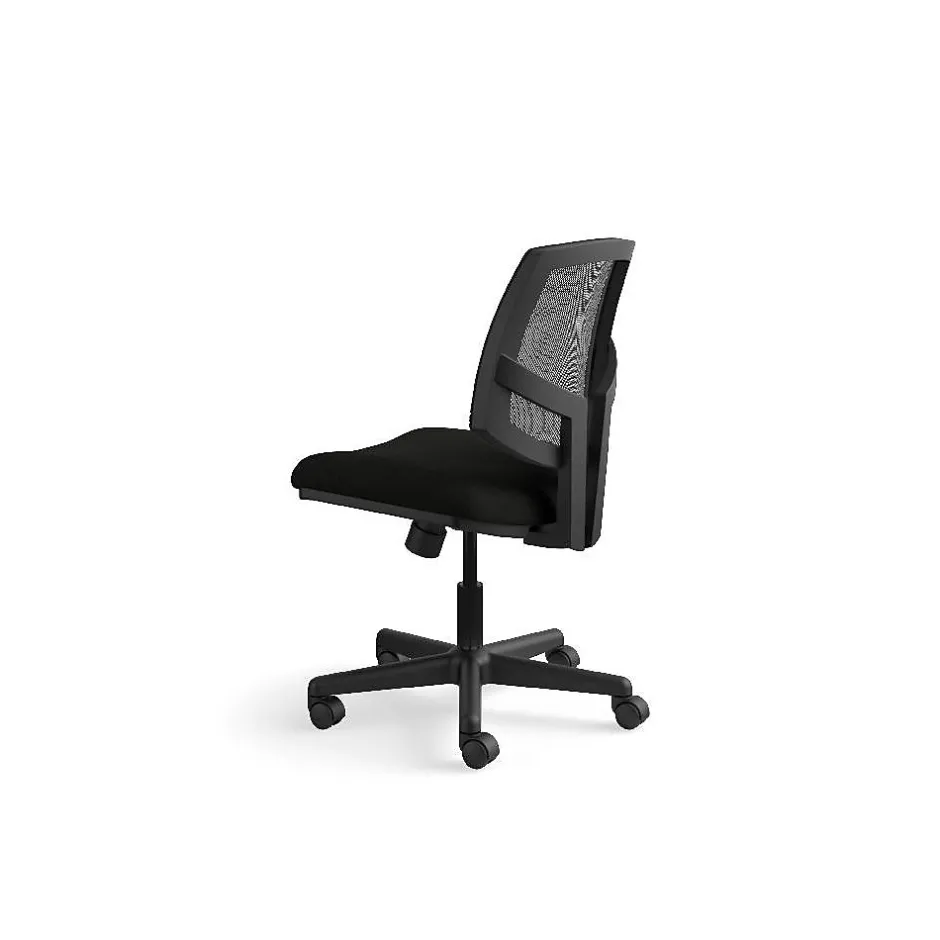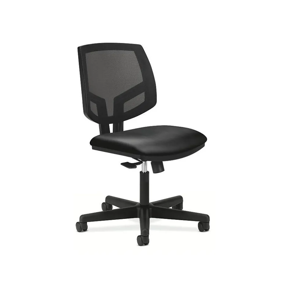 Give your staff all-day comfort with this HON Volt mesh-back task chair. The black SofThread leather seat features a plush padded cushion, while the mesh back lets air circulate to keep you cooler throughout the day. With pneumatic seat height adjustment, this office chair offers customization options for every user. The center tilt function creates the perfect ratio of recline, so you can sit back comfortably. Use the tilt lock function to secure the seat at the right angle for work or rest and rotate from one task to another with the 360-degree swivel function. This HON Volt mesh-back task chair comes in an armless design, making it easy to get in and out of the seat.