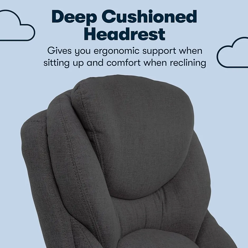 - Thick ergonomic layered body pillows, cushioned headrest, and padded arms are comfortable and supportive