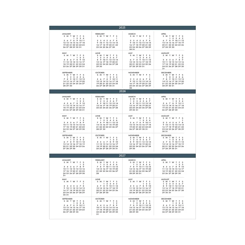 - Three-year calendar reference page for long-range planning
