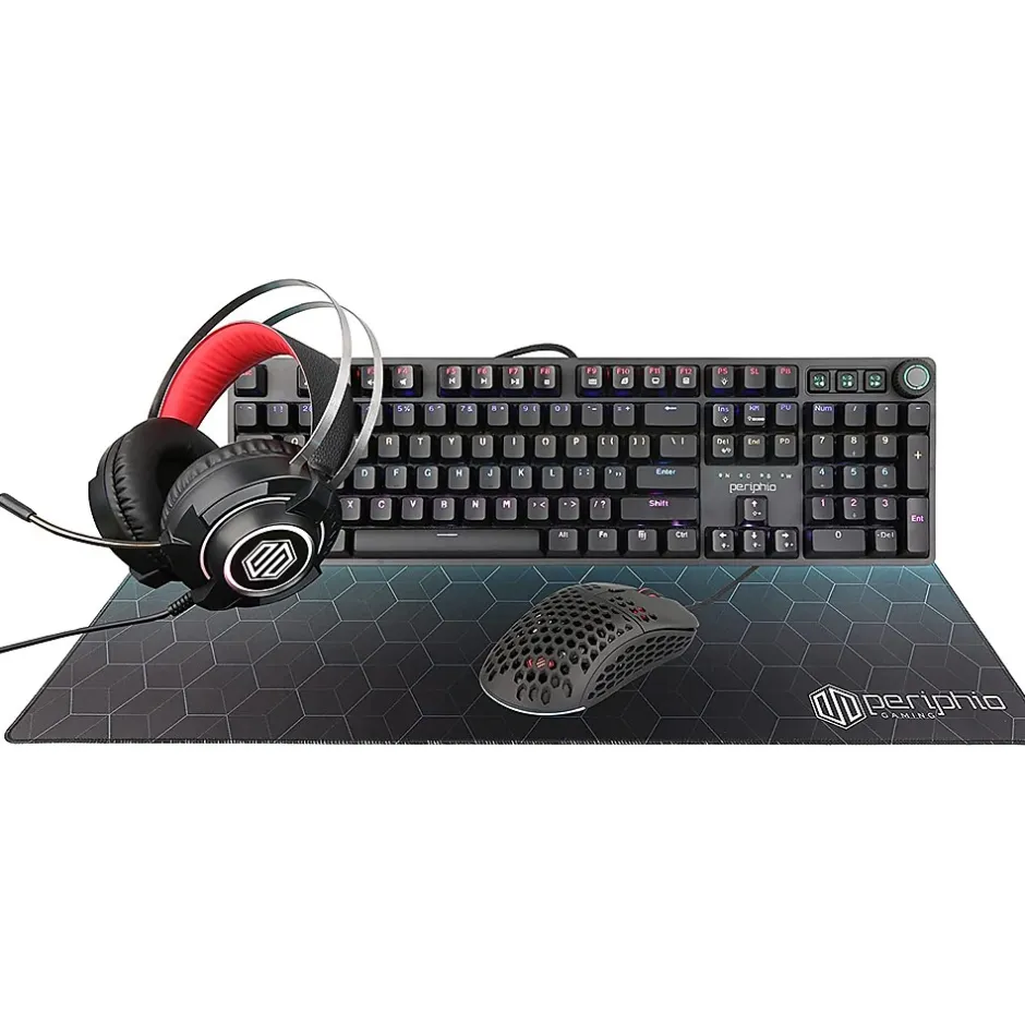 - Includes an RGB mechanical keyboard and mouse, RGB headset, XXL Periphio desk mat, and power cord for immediate setup