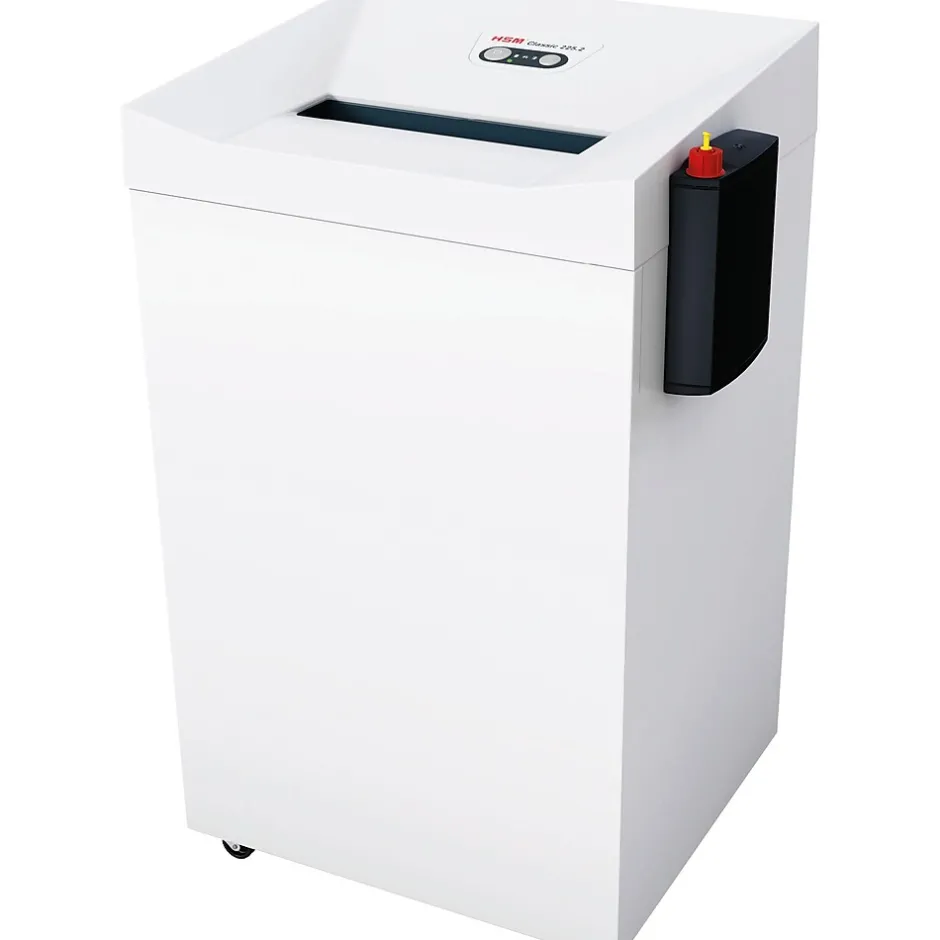 HSM 225.2L6, 12 sheet high security shredder has a 31.7 gallon capacity. NSA approved and makes paper particle reassembly impossible.