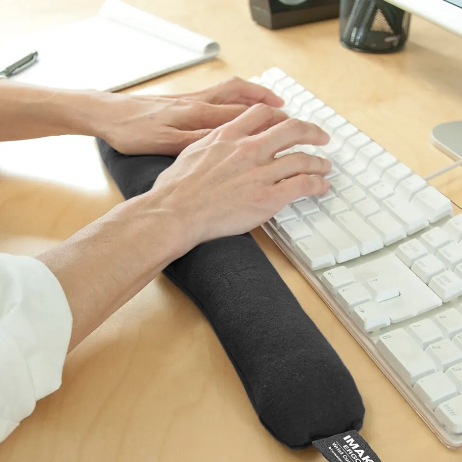 Work comfortably and keep your hands healthy with this keyboard wrist cushion. Designed by an orthopedic surgeon, this cushion fits below keyboards and keeps your hands in an ergonomically correct position to reduce stress on joints and improve comfort. This Brownmed IMAK Ergo keyboard wrist cushion is filled with supportive ergoBeads that massage as you type for lasting comfort.