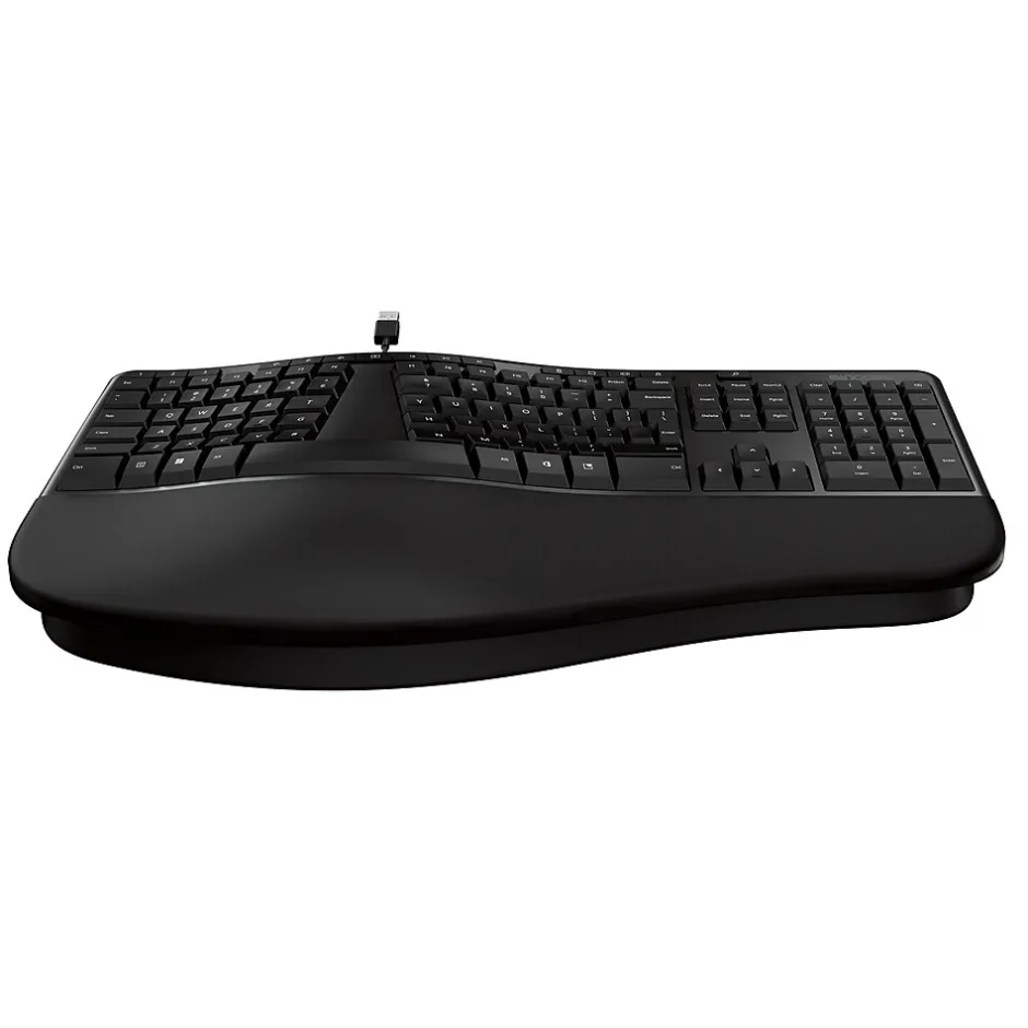 Made for a comfortable all-day typing experience, the Ergonomic Keyboard, designed by Microsoft, is slim, refined and considered. Designed by ergonomists, it features a split keyset, improved cushioned palm rest, short cut keys, and supportive structure intended to reduce fatigue while enhancing your creative experience.