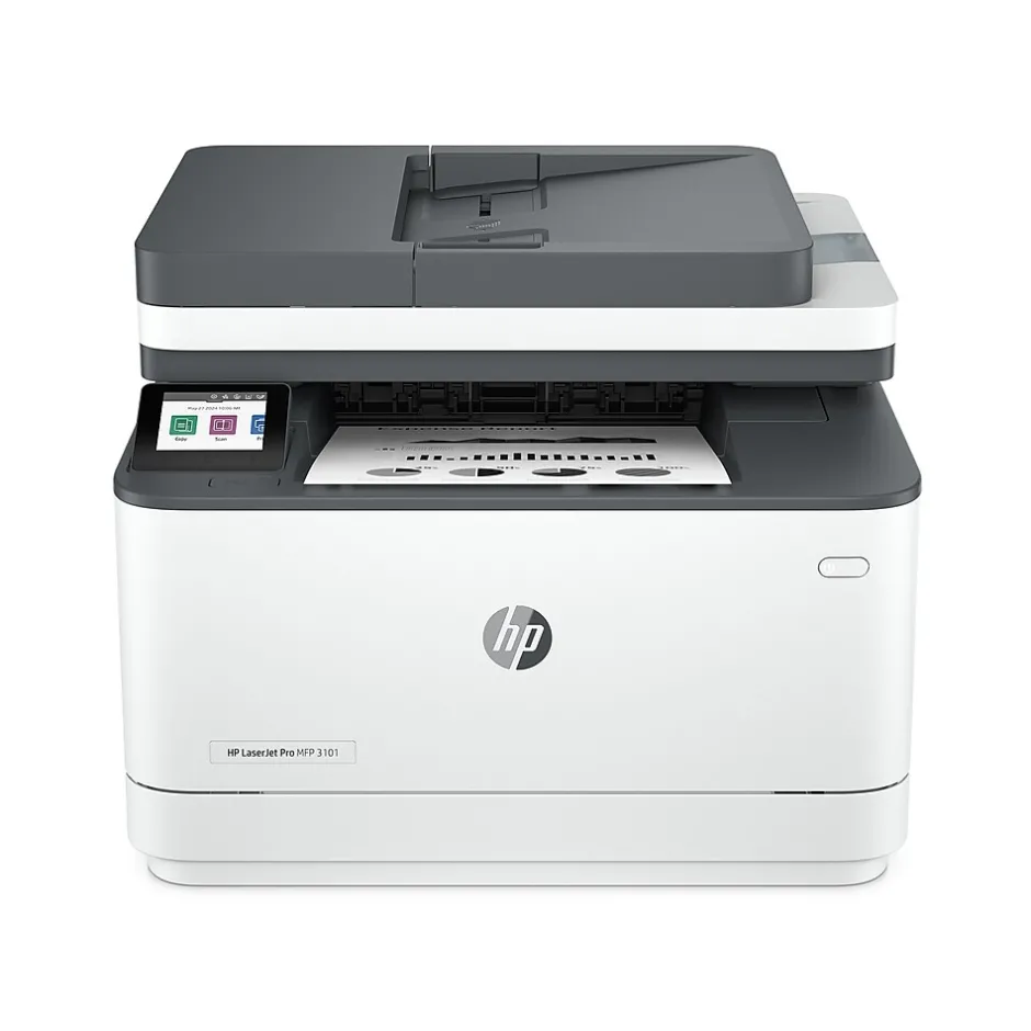 Ideal for small teams, get high-quality printing and powerful productivity with the LaserJet Pro MFP 3101sdw. This all-in-one laser printer is loaded with features and incredible speed perfect for offices. Print, scan and copy from anywhere with HP app. Connect via wireless or ethernet with the 3101sdw, a printer that has built-in Wi-FiĀ® and HP Wolf Pro to keep your information secure.