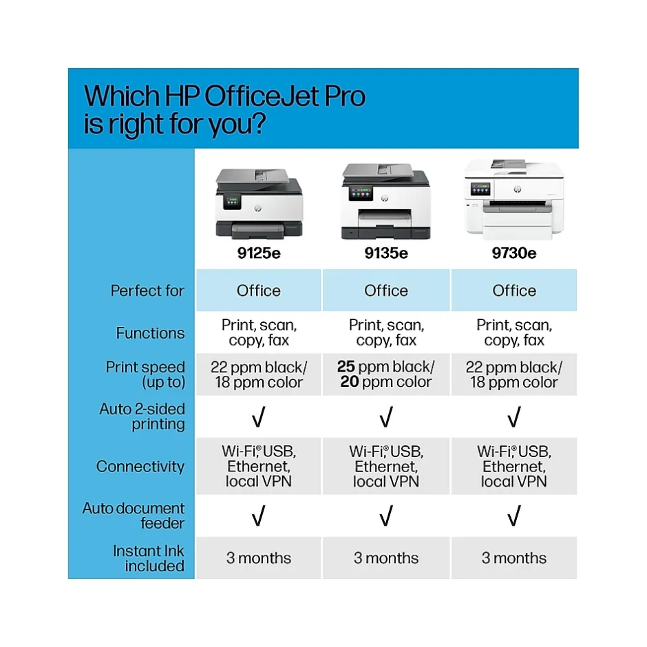 - FROM AMERICA’S MOST TRUSTED PRINTER BRAND – The OfficeJet Pro 9730e is perfect for offices printing professional-quality color documents like floorplans, mood boards and spreadsheets. Print speeds up to 18 ppm color, 22 ppm black.