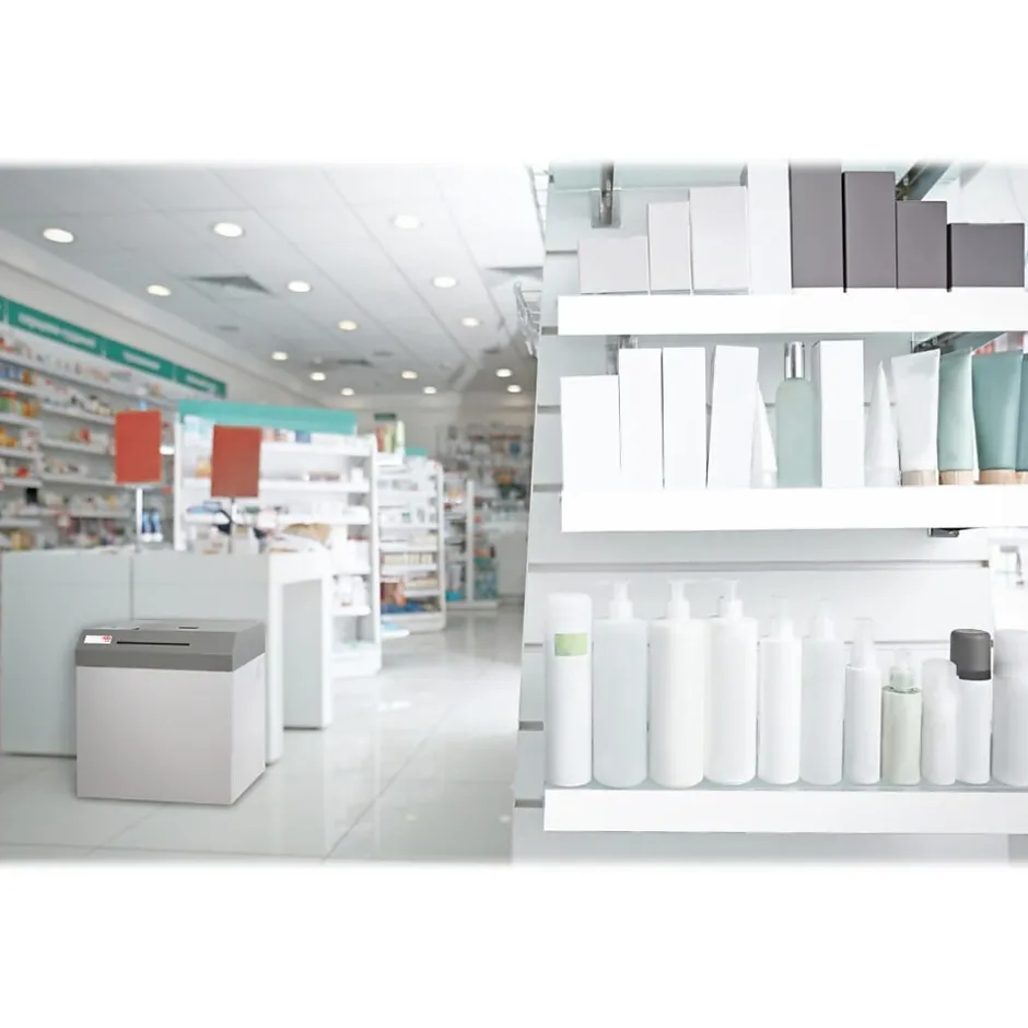 - Commercial-grade, continuous-duty, easy-to-use shredder for destruction of pill bottles, medical records, and multimedia