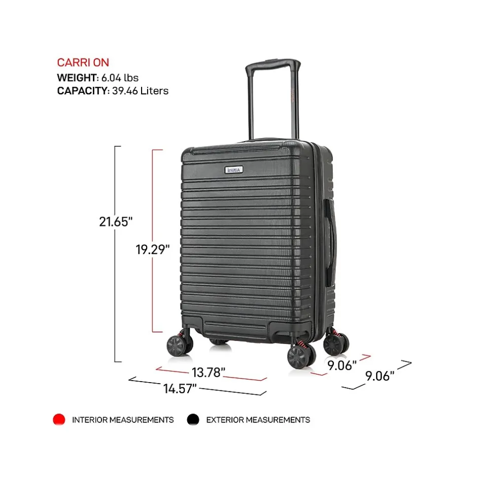 The InUSA Deep 20″ carry-on luggage features a contemporary, impact-resistant, and functional design. The suitcase is made of engineered material with a micro-diamond finish. The hard-flex construction offers maximum strength, durability, and a water-/scratch-resistant finish. Top and side ergonomic gel handles ensure comfortable and easy luggage lifting. It comes equipped with a push-button locking internal retractable trolley system. Features smooth-gliding self-repairable oversized zippers.