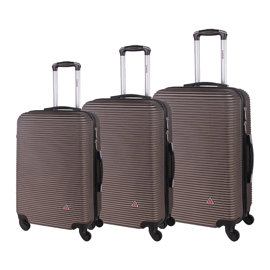 Features contemporary, impact-resistant, functional design. Made of engineered material with micro diamond finish. Full interior lining. Four multidirectional 360-degree silent spinner wheels for effortless mobility. Push-button locking internal retractable trolley system. the InUSA Royal luggage set has ergonomic top and side gel handles for comfortable and easy lifting. Tie-down straps to secure your belongings inside. Four side studs allow the luggage to stand upright on its side. Suitable for most major airlines.