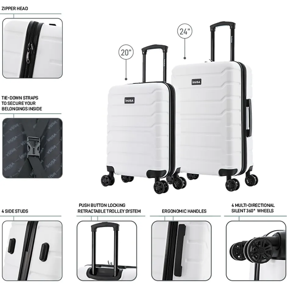 InUSA Trend lightweight hardside spinner 2 Piece Luggage Set 20″ & 24″ White