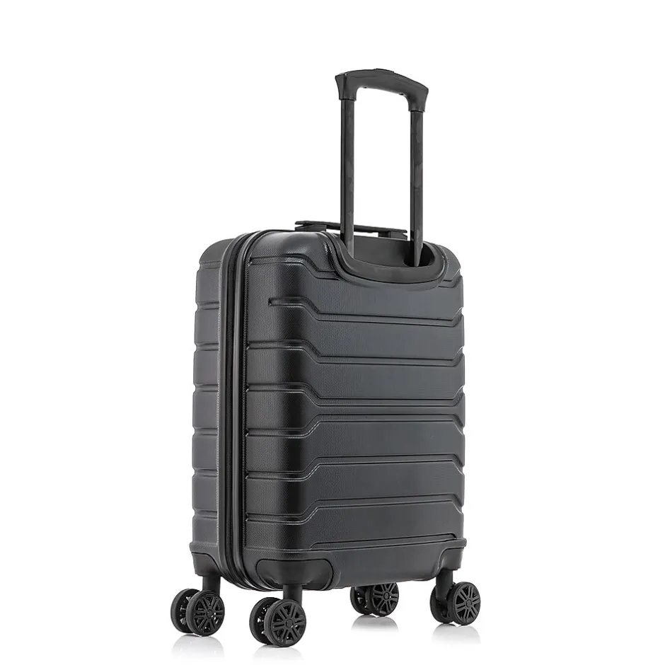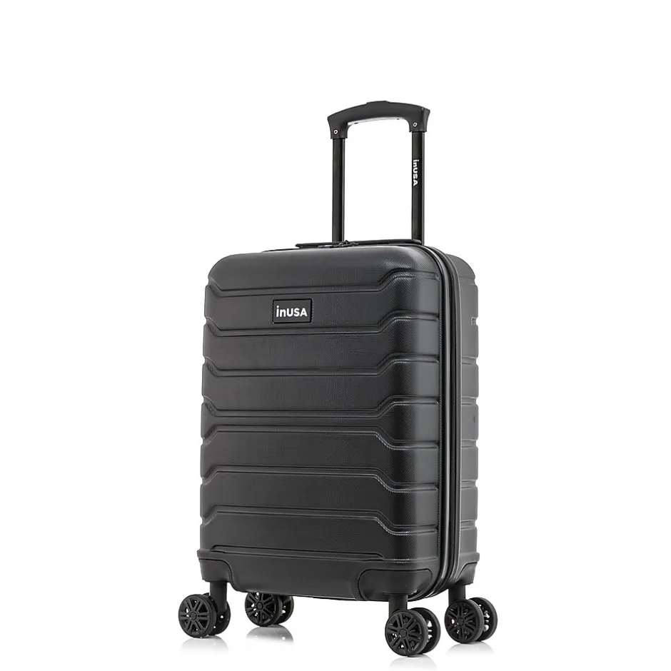 Improve your travel experience with this InUSA Trend carry-on luggage. Made of lightweight PC/ABS engineered material with a brushed finish, this luggage features a push-button locking internal retractable trolley system and four dual 360-degree silent spinner wheels for smooth, effortless mobility. The hard-flex construction offers maximum strength, durability, and resistance to water and scratches. Four side studs let the luggage stand on its side, while the top ergonomic gel handles provide comfortable and easy lifting.