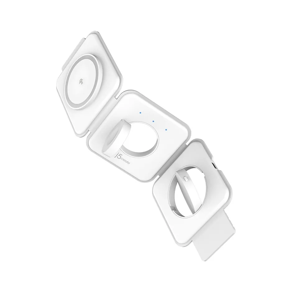The j5create three-in-one wireless charging station redefines convenience for charging your devices. Designed specifically for the tech-savvy individual, it offers a three-in-one charging solution that allows you to charge your cellular phone, smart watch, and wireless earphones simultaneously. With the integration of Power Delivery 3.0 technology, it ensures your devices are charged quickly and safely. The inclusion of a 3.28′ USB Type-C cable adds to its convenience, making it easy to connect to power sources while on the go. Constructed with high-quality ABS plastic and polycarbonate, this charger is not only durable but also sleek, fitting seamlessly into any setting. Its compatibility with Qi2 standards further enhances its versatility, making it a must-have accessory for anyone looking to streamline their charging needs.