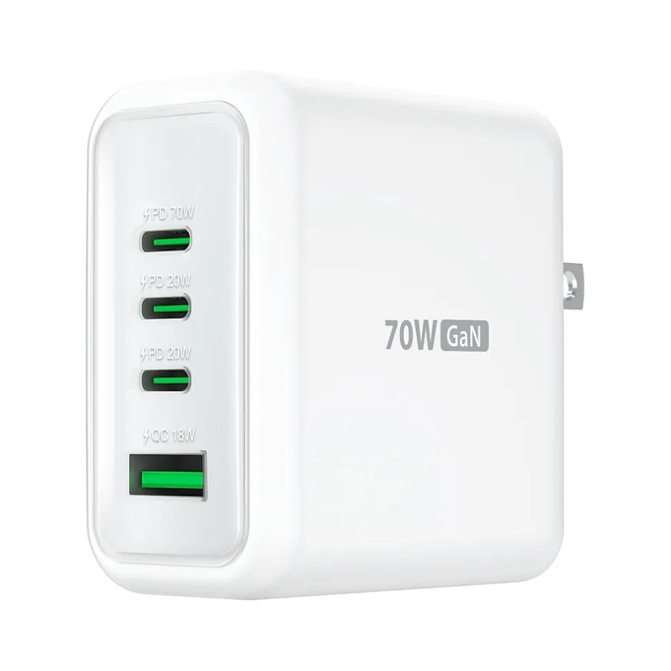 - This four-port charger can effortlessly charge four devices simultaneously with up to 70W of power
