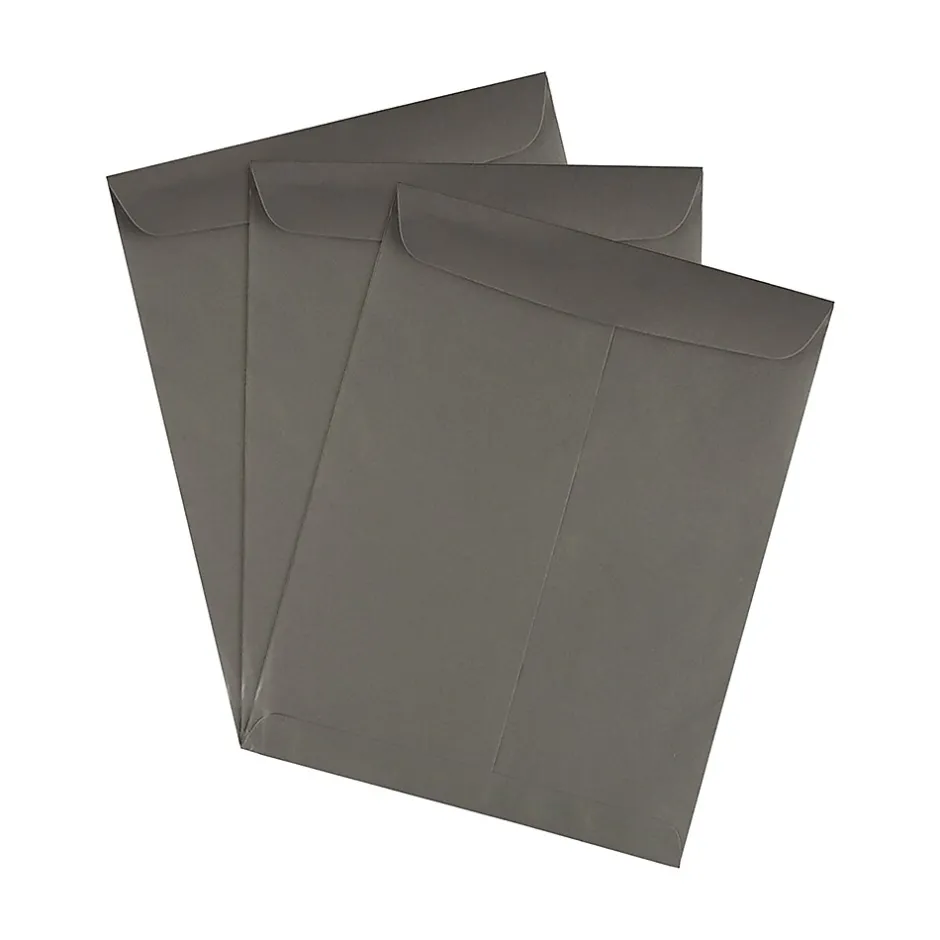 Bold And Functional Office SuppliesGet the powerfully bold JAM PaperĀ® Original Dark Gray Open End Envelope. This top quality envelope is just what you need to organize your desk space and send out important documents. Each 10 x 13 inch envelope is made from the highest quality 28 pound paper and has a texture finish. These stylishly colored envelopes come in a pack of 50 so you have plenty for all your home and office needs. Our catalog envelopes are perfect for mailing invoices, checks, cash, and a variety of other document types. They also make great color coded organizers for budgeting and other tasks. They have a commercial flap and gummed adhesive closure so you know your documents are secure inside.DetailsSize: 10 x 13 inchesQuantity: 50 EnvelopesColor: Dark GrayPaper Weight: 28 pounds