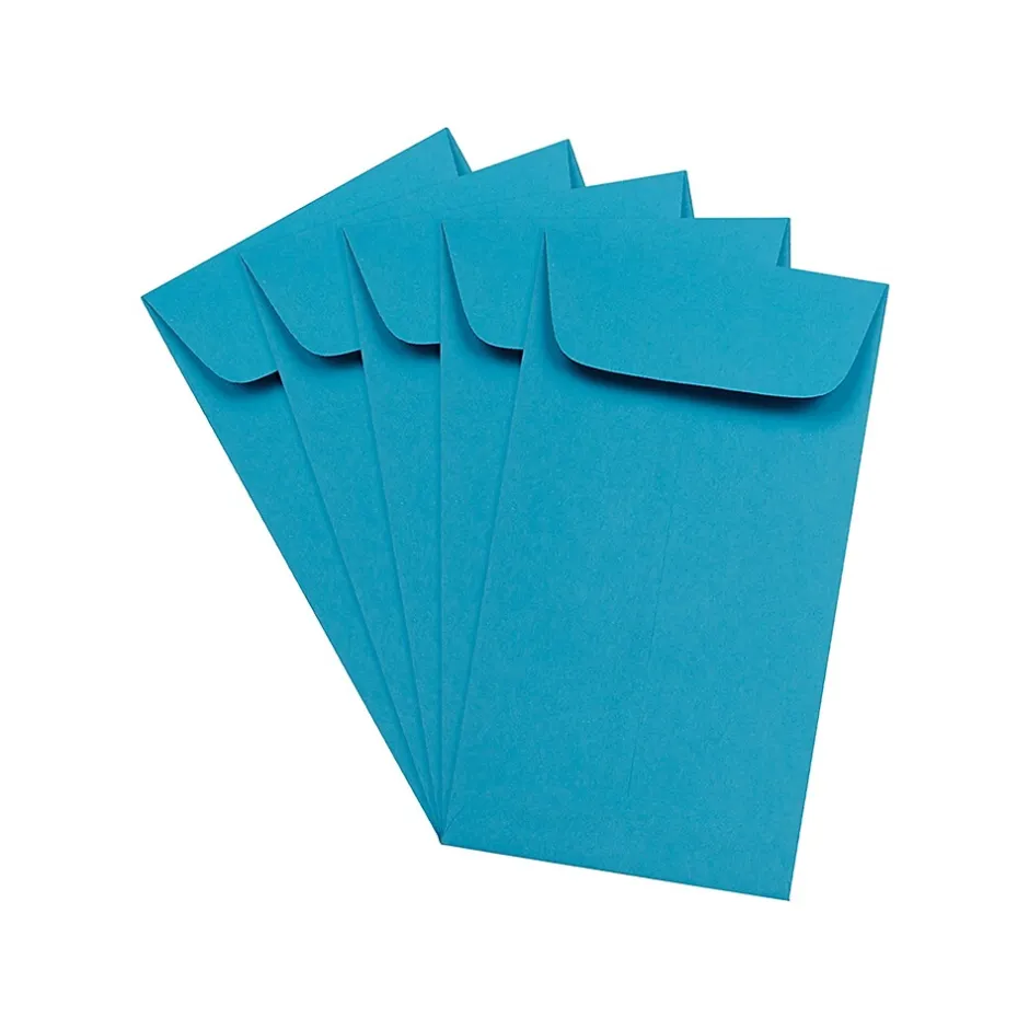 Looking for a great way to track of small and easily lost items? Perhaps you need a small and brightly colored envelope to send out a memo and a business mailing. JAM Paper Brite Hue Blue Recycled #6 Coin Envelopes are perfect for both purposes! These environmentally-friendly and reliable envelopes measure 3 3/8 x 6 inches in size and are made out of smooth, 28lb, 30% recycled paper. A convenient total of 25 envelopes is contained in this pack. Each one features a vibrant and stunning bright blue color that will make them stand out in any office, room, or mailbox! These envelopes feature straight flaps and dependable gum closures to keep them securely closed.
