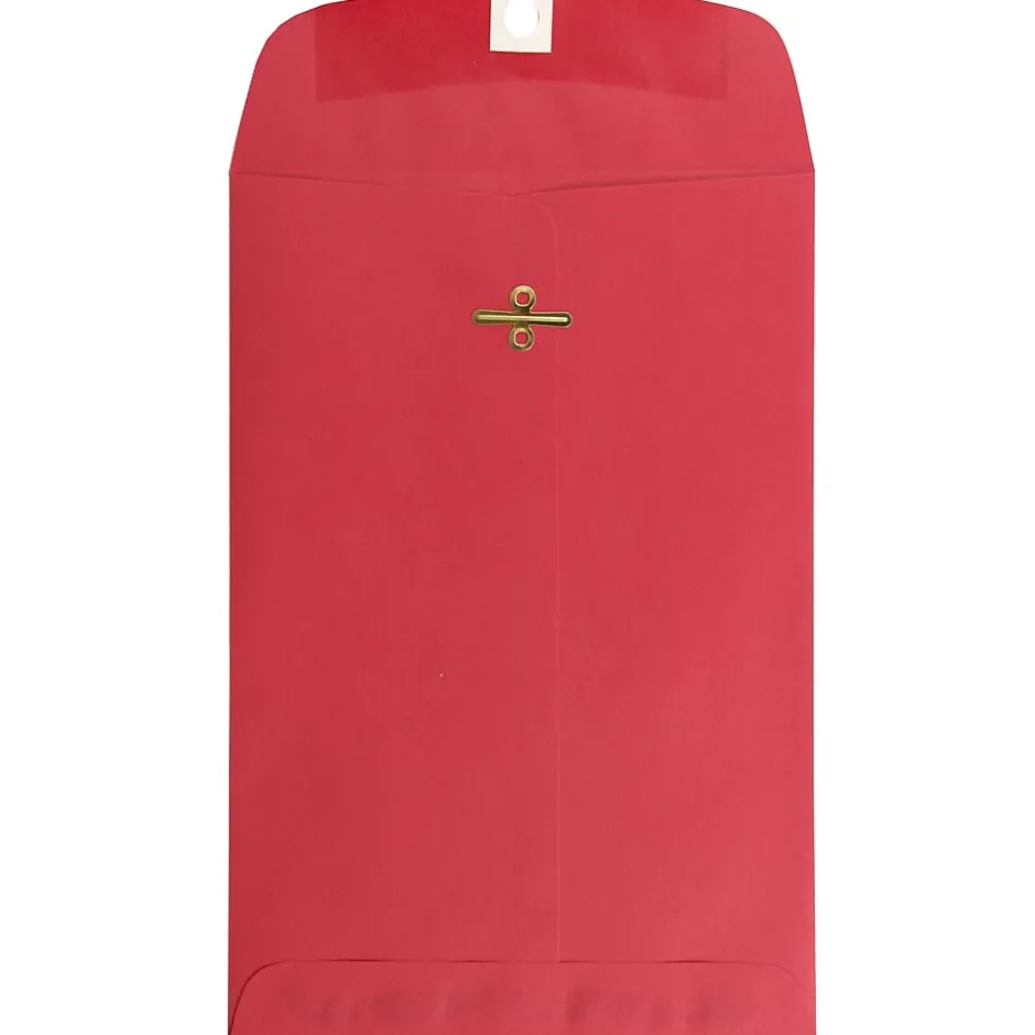 JAM PaperĀ® Red Recycled 6 x 9 Open End Envelopes with Clasp Closures are made out of smooth, high quality, 30% recycled, 24lb paper. This pack contains 10 envelopes. Each one has a straight flap with rounded corners and a reliable, easy-to-use metal clasp closure. There is also an optional gum closure for additional reinforcement. Each one of these open end envelopes measures 6 x 9 inches in size and features a bright and bold red color. This color makes them especially useful for mailings during the Christmas season and around the time of Valentine’s Day. Use them to send letters, promotional materials, holiday cards and more!