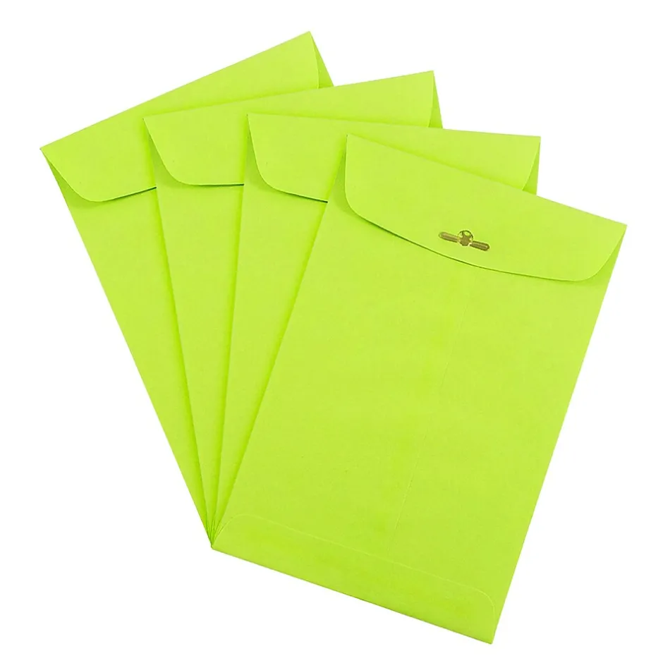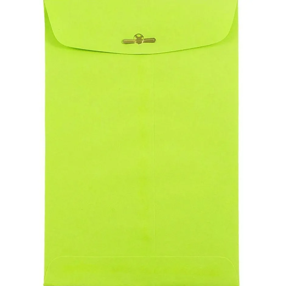 JAM Paper® Ultra Lime Open End Envelope with Clasp Closures feature a bright and vivid ultra lime green color that will immediately grab the attention of any recipient or observer! This pack contains an even total of 25 envelopes. Each one features a commercial flap opening and a reliable, easy-to-use metal clasp closure! For additional reinforcement, each one also features a gum closure. These open end envelopes are great for cards, invitations, folded documents, promotional materials, catalogs, messages, letters, photos, announcements, and more! Use them for home, office, or special event mailing needs.