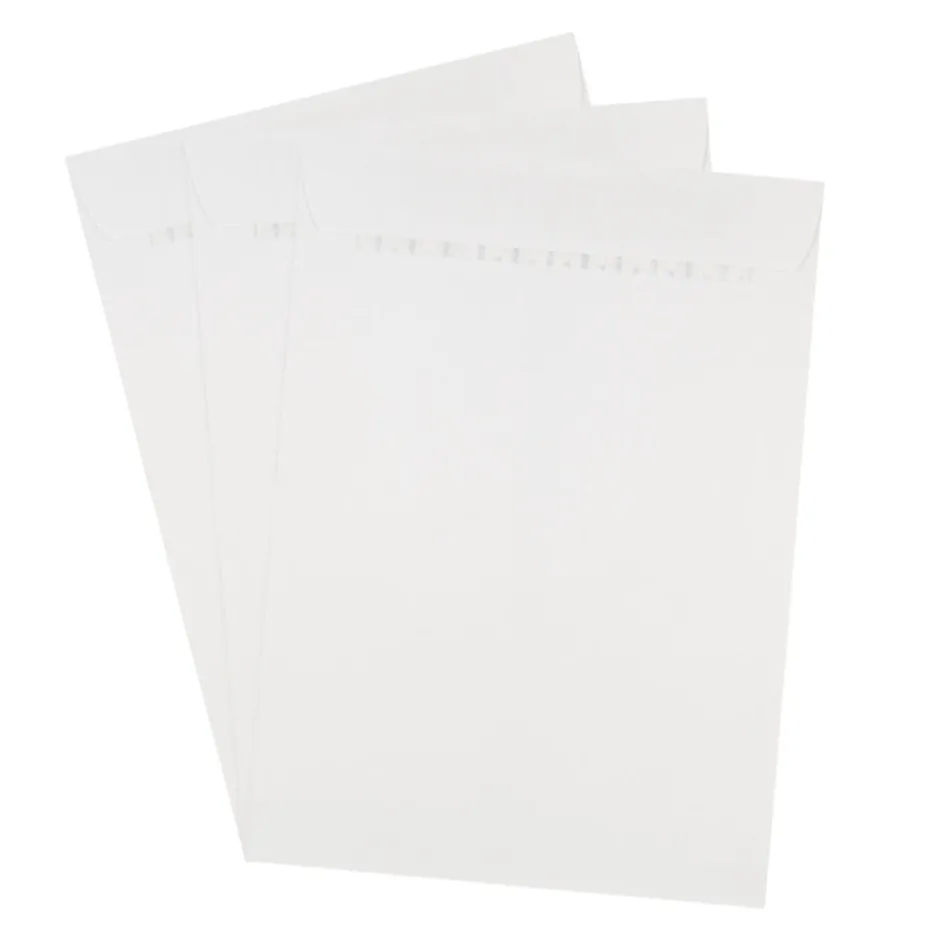 Tailored for the busy people, JAM Paper® Peel & Seal Envelopes get your mail sent safely and quickly. Featuring a simple peel and seal closure, you save time and hassle for the times where you need it most.Insert business correspondence, paperwork, reports, work presentations, loose papers, and much more with the confidence that your contents are protected and stay in one place. Recipients will immediately notice and open your mail upon receiving! This pack includes 50 white envelopes made from 28 lb. paper measuring 7 1/2″ x 10 1/2″. Each envelope has an open end opening, wallet flap, self adhesive strip closure, and smooth finish.