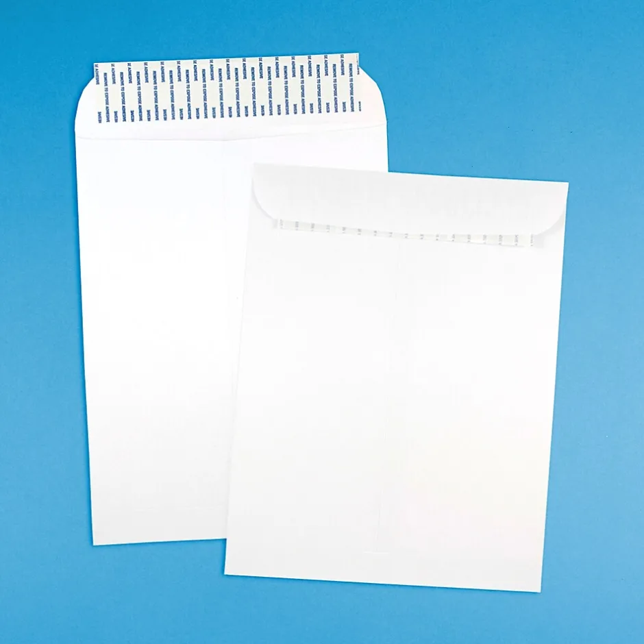- Fashioned from 24lb paper, crisp, white envelopes feature a self adhesive closure.