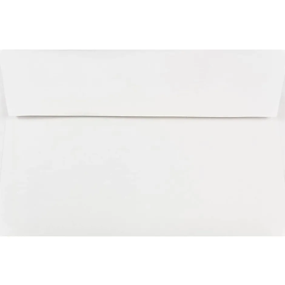 JAM PaperĀ® A9 White Booklet Envelopes offer a high quality way to send larger mailings. These 5 3/4″ x 8 3/4″ white envelopes can be used to send a variety of mail such as catalogs, invitations, greetings, announcements, documents, flyers, marketing materials, and thank you cards. There’s no need to bend or fold your contents, as they fit comfortably inside these spacious envelopes. Appropriate for home, classroom, and office use. However you use, expect high quality performance and efficacy. This pack contains 25 white booklet envelopes made from 24 lb. paper. Each envelope has a booklet opening, straight flap, gum closure, and smooth finish.
